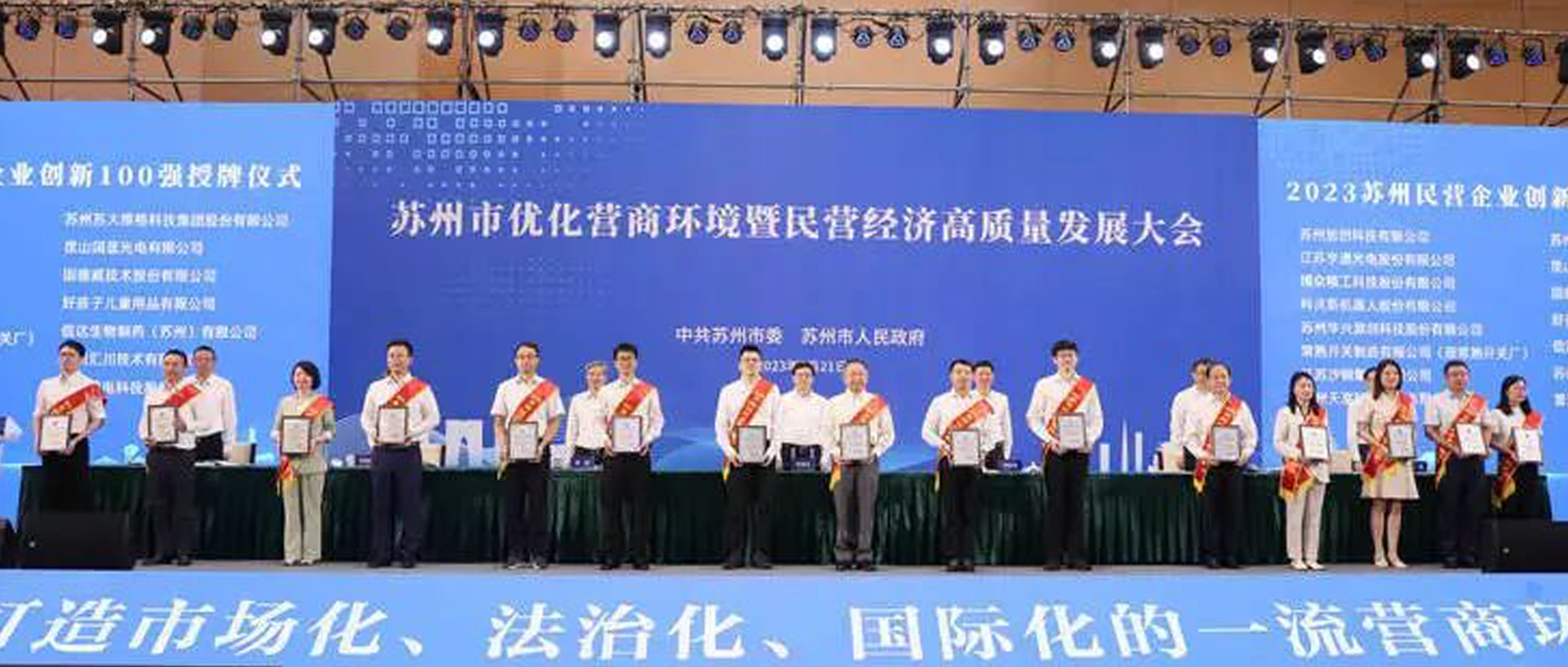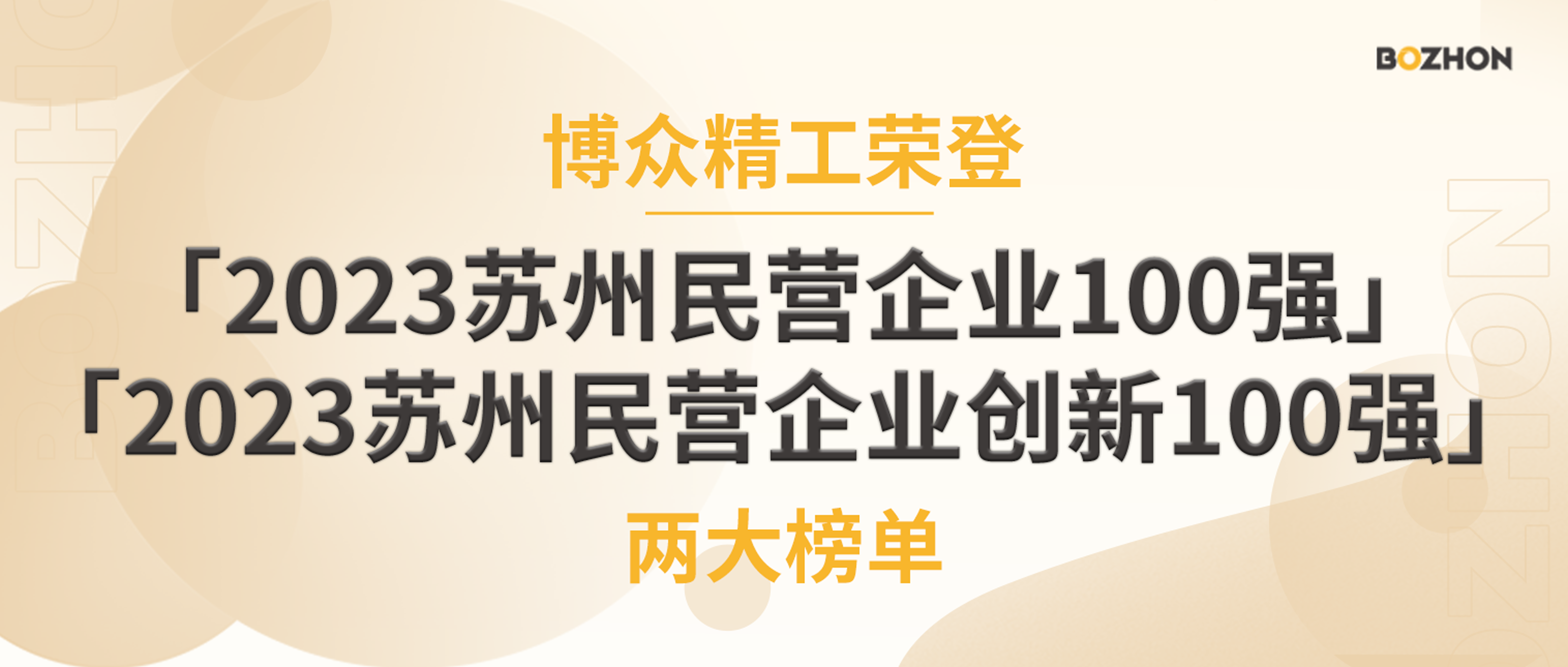 7月21日,在第二个“苏州企业家日”,苏州市优化营商环境暨民营经济高质量发展大会顺利召开。会上发布了“2023苏州民营企业100强”、“2023苏州民营企业创新100强”两大榜单。博众精工同时上榜,位列民营企业创新100强第3位,民营企业100强第67位。