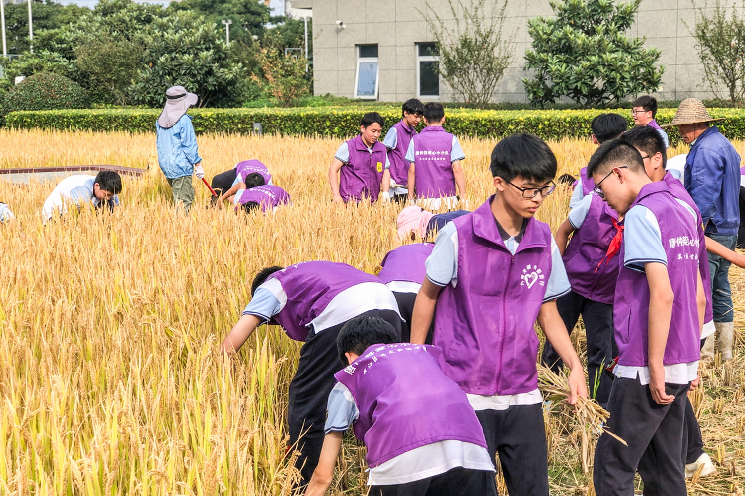 师生们和博众人及家属们都跃跃欲试。他们纷纷拿起镰刀,踏入稻田,开始了正式的收割环节。在稻田中,每一刀割下,都伴随着稻谷与秸秆分离的声音,那是大自然最真实的乐章。