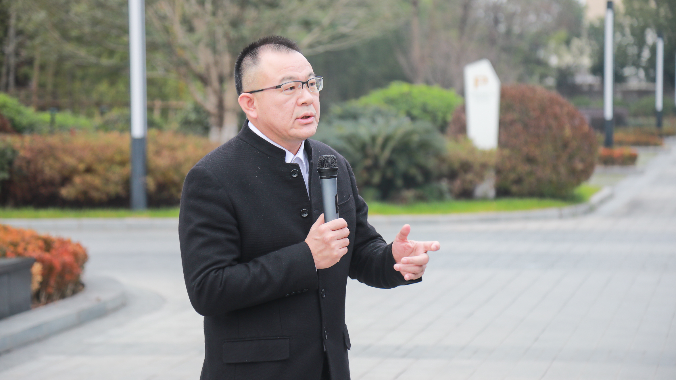 在升旗仪式后,博众精工董事长吕绍林进行分享。他首先对现场来的伙伴表达了深深的谢意。回顾2023年,那是充满挑战的一年。2024年公司将面临新的机遇与挑战,相信有全体博众人在,再难的问题,再难的路也都能越过。最后,吕董向大家发出了最诚挚的呼吁,呼吁大家同心协力,2024一起加油干!