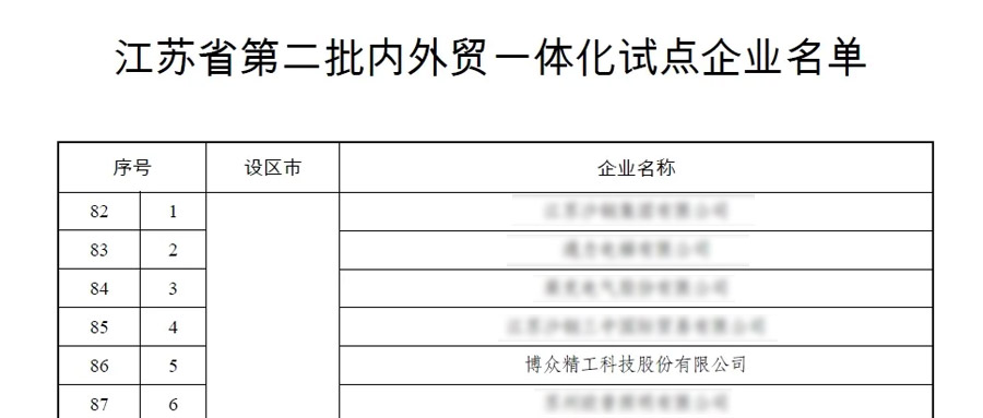 近日,江苏省商务厅正式公布了“第二批内外贸一体化试点企业名单”,博众精工凭借在智能中超官方网站制造领域的深厚积累、创新能力和国际市场竞争力成功入选。本次入选,不仅是对公司长期以来坚持智能中超官方网站制造领域的肯定,更是对公司在推动内外贸融合发展、促进国内外市场循环畅通方面的认可。