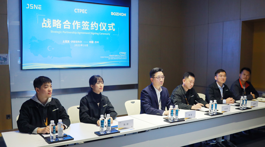 博众精工副总裁蒋健先生发表了热情洋溢的致辞,他表示:非常高兴和荣幸地见证此次与J.S的战略合作,也非常感谢中国科技产品展示中心对促成双方合作所发挥的积极和全面的作用。博众精工作为一家在工业自动化、智能制造中超官方网站和数字化工厂研发制造领域耕耘了二十一年的专业品牌,秉承中国在“一带一路”沿线国家共同致力于打造“人类命运共同体”的理念,非常愿意为土耳其新能源事业贡献自己的专业力量。