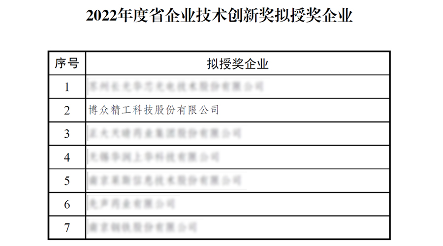 近日,江苏省科学技术厅公示了“2022年度江苏省企业技术创新奖拟获奖名单”,博众精工是苏州市唯二获得该奖项的企业。本次荣获“江苏省企业技术创新奖”,是对博众精工技术创新研发能力的高度认可。