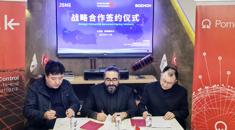 12月19日,博众精工与土耳其Kontrolmatik和J.S达成战略联盟,三方将在锂电池设备、半导体设备及机床等多个领域展开深度合作。签约仪式在土耳其伊斯坦布尔举行,博众精工董事长吕绍林先生、数字能源电池事业部总经理张善新、数字能源市场总监章琦,Kontrolmatik董事长Sami先生,J.S总经理Hanimet先生等出席仪式。