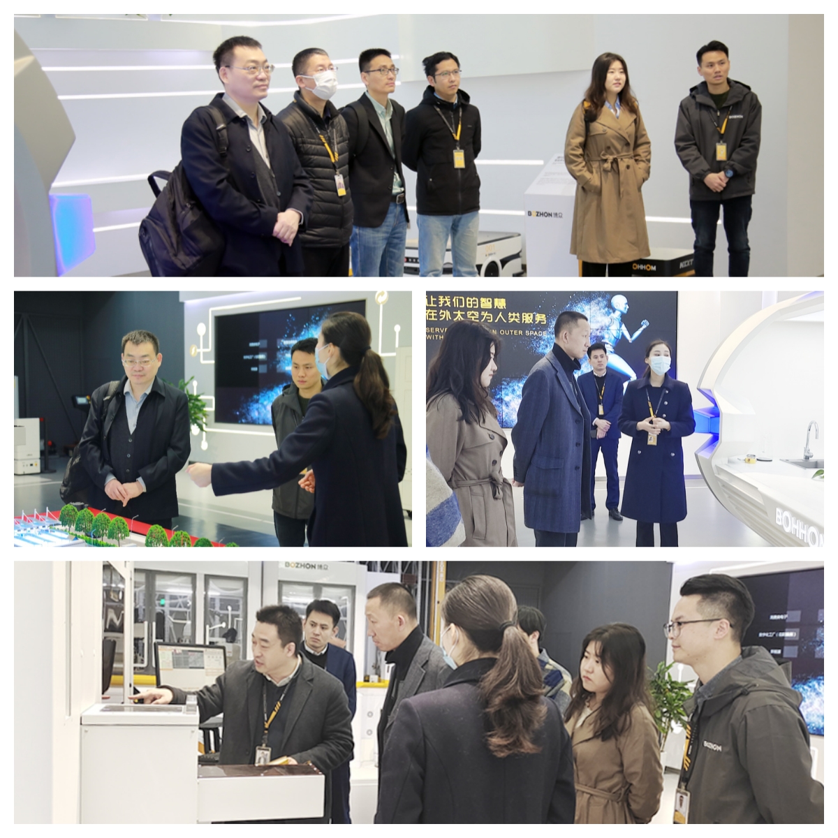 参观结束后,以技术创新中心核心,博众精工多个业务板块的技术研发团队参与了技术交流会议。围绕博众精工的技术需求及两位专家教授的研究领域,双方分别展示了相关的研究资料及部分硬件材料,并分别对技术难点进行了重点阐述及深入交流。