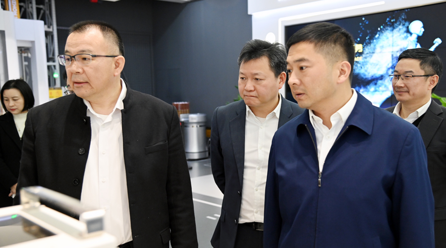 李文斌副书记一行重点参观了博众精工展厅,吕董向李文斌副书记介绍了博众精工的发展历程、业务范围、集团布局以及公司的未来战略发展方向等。