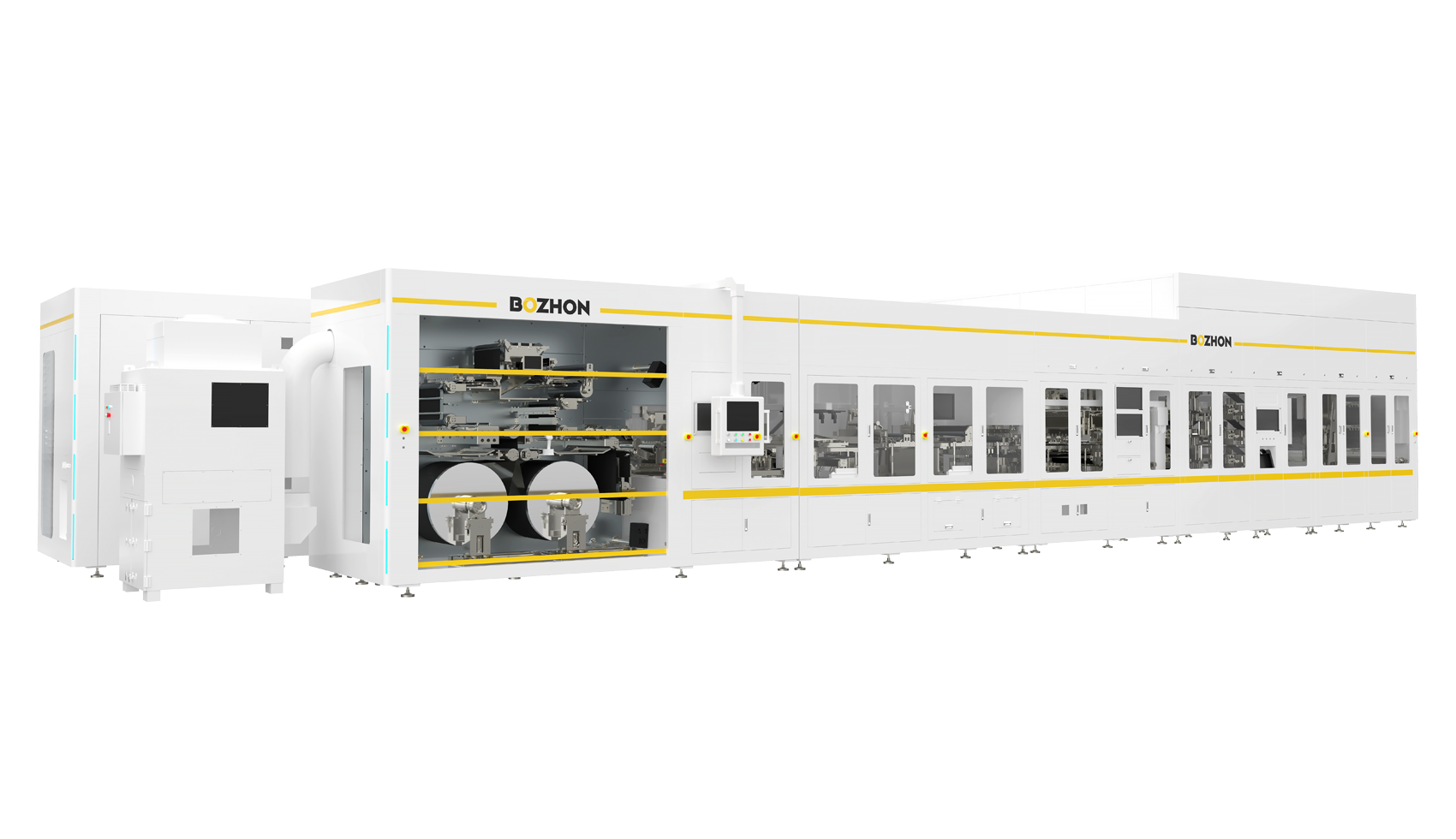 由正极制片段、负极热复合单元和叠片段组成,正极制片段将卷状极卷上料放卷、纠偏后切断成片,再经过尺寸检测和正反两面缺陷,排出NG极片,良品流入后续叠片段;